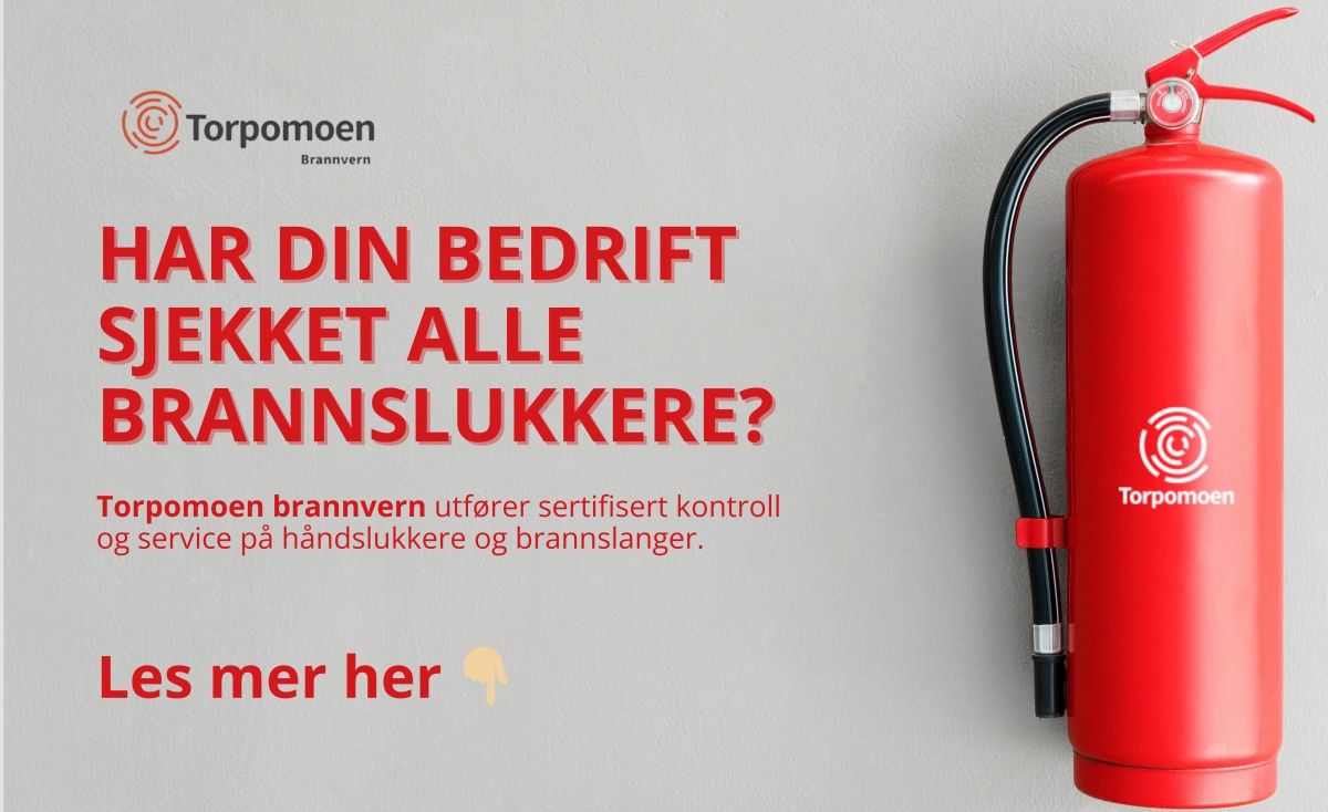 Torpomoen brannvern utfører sertifisert kontroll og service på håndslukkere og brannslanger. Vi har kompetent verksted og personell for utføring av kontroll og service iht. NS3910 og NS-EN671-3 Kontroll kan utføres ute hos bedriften eller på Torpomoen. Inkluderer dokumentasjon til internkontrollsystem og merking av apparatene. Etter kontroll tar vi årlig kontakt for ny kontroll.